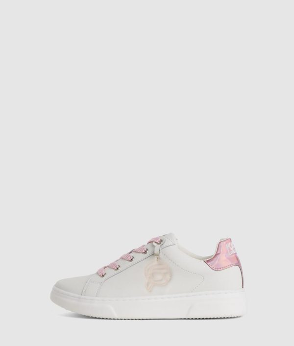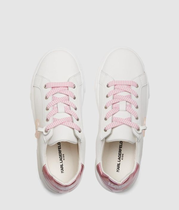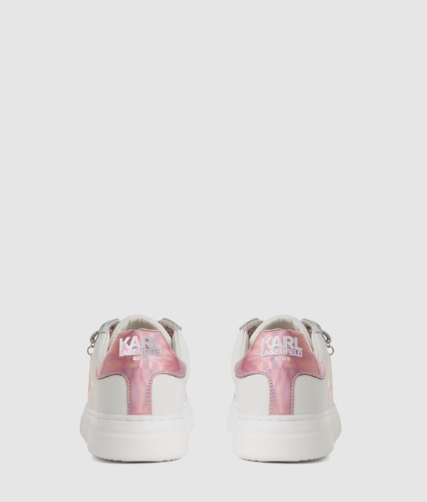 These standout sneakers feature a metallic logo heel, breathable lining, and a playful Ikon Karl charm for steps that sparkle.
