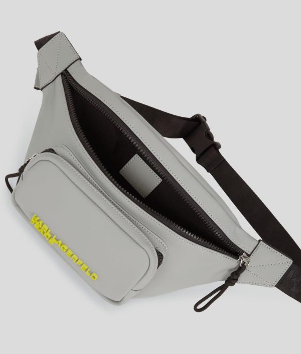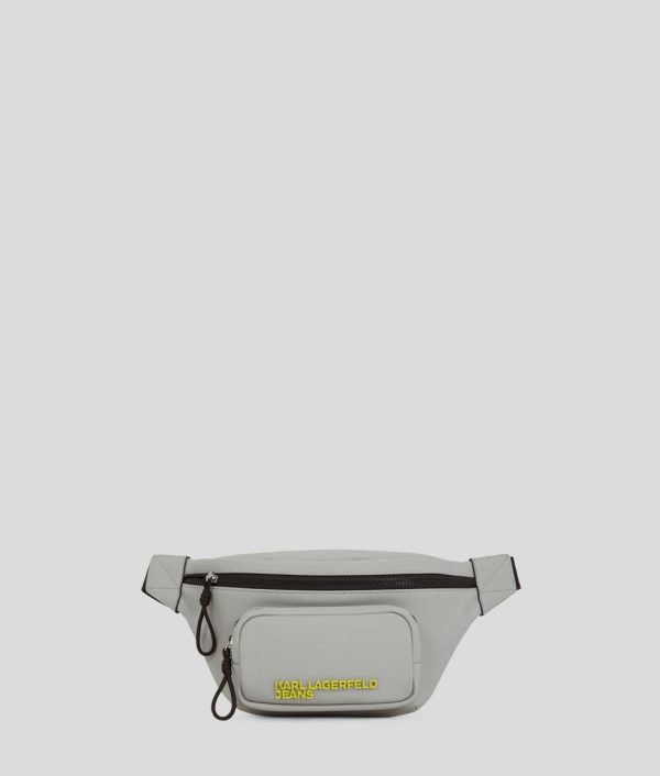 This sleek, technical leather belt bag features a zip-top closure for keeping essentials secure on the move. An adjustable strap allows for personalized comfort and a standout KARL LAGERFELD JEANS logo adds a statement finish.