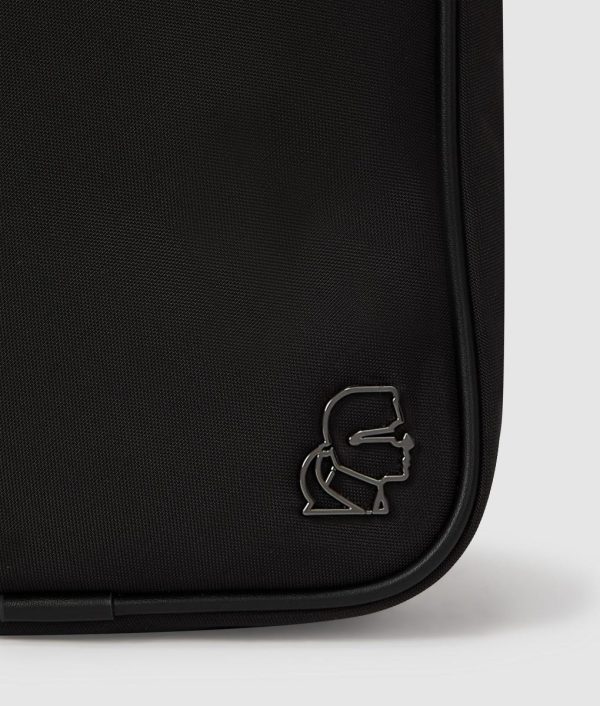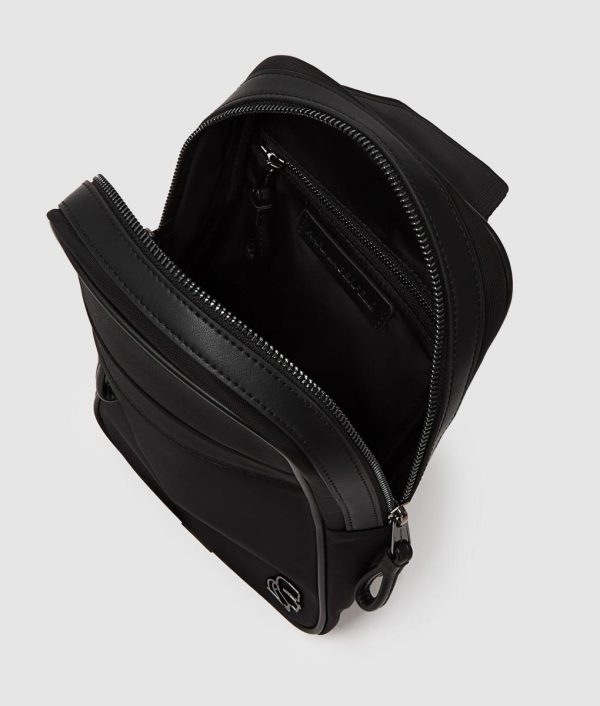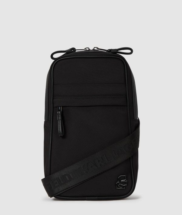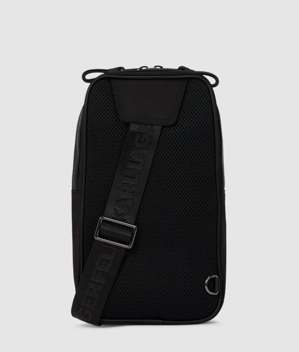 Elevate your everyday style with this sleek sling bag, featuring a secure zip closure and versatile strap. The zipped front pocket offers easy organization, while the accessory is anchored by tonal Karl Kameo hardware.