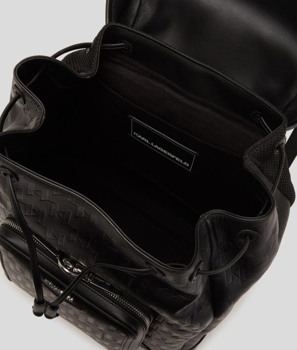 Discover the perfect companion for your daily commute or weekend adventure in this sleek backpack, featuring a secure buckle flap closure and a statement all-over Karl Monogram design. A zipped front pocket and dedicated laptop compartment offer enhanced organization, while the padded shoulder straps provide all-day comfort.