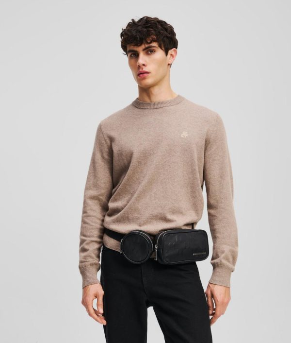 This contemporary crossbody bag showcases a statement all-over Karl Monogram design, complemented by the iconic KARL LAGERFELD logo. With a secure zip-top closure and an adjustable strap, it combines versatility and flair.