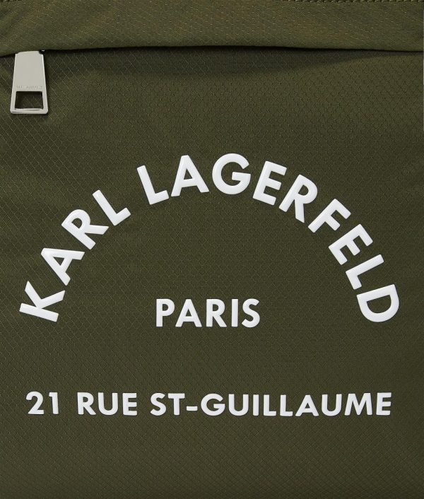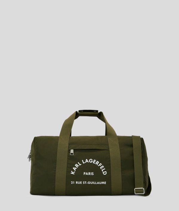 A spacious weekender bag featuring a secure two-way zip for easy access and a practical front pocket to keep essentials within reach. Twin top handles and a detachable crossbody strap enhance versatility, complemented by a statement Rue St-Guillaume logo.