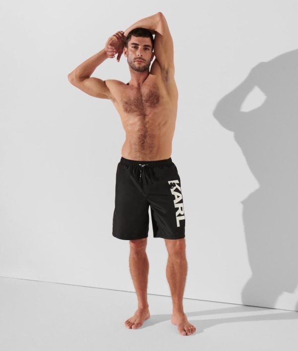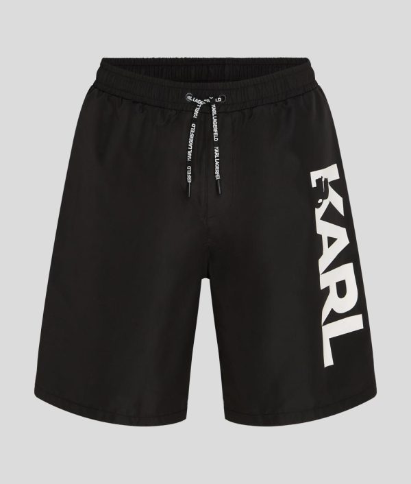 Elevate poolside style with these classic board shorts, featuring a drawcord waist, practical pockets, and accented by the unmistakable KARL logo.