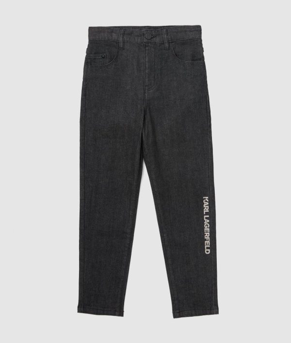 Built to move, made to last. These jeans feature a classic five-pocket design, adjustable waist for growing room, and a logo patch at the back.