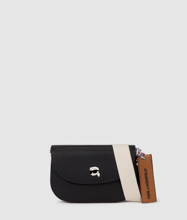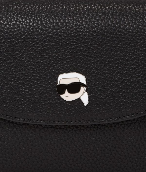 Crafted from textured technical leather, the Ikon crossbody bag combines playful attitude with practical design. Its detachable strap offers versatility, while an Ikon Karl pin and KARL LAGERFELD branded charm add unique touches.