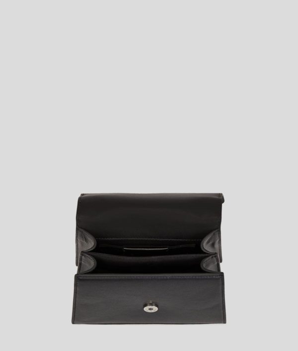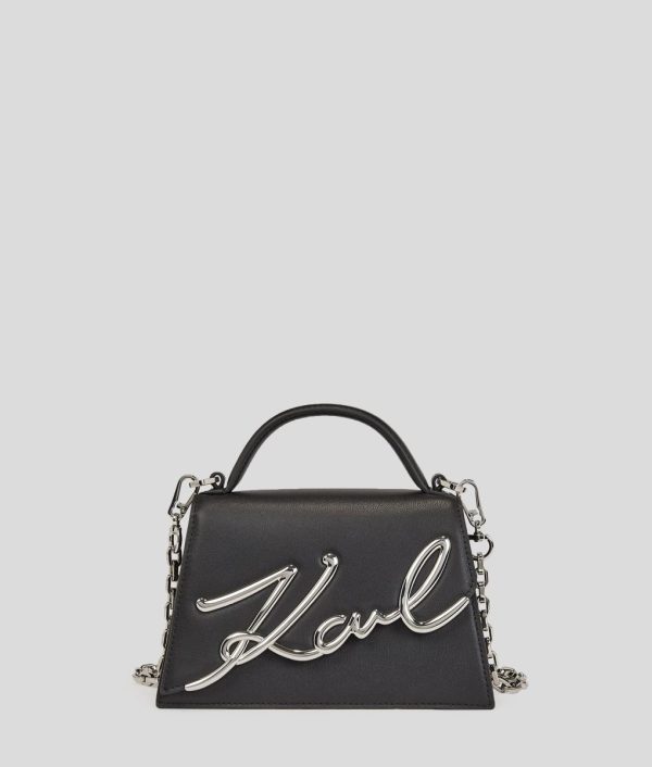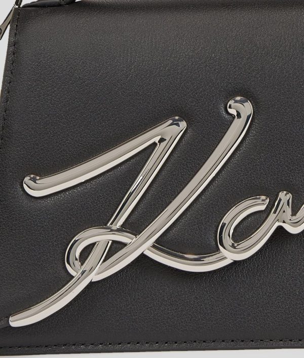 The petite K/SIGNATURE crossbody bag is defined by its trapeze-shaped silhouette and angled logo hardware at the flap closure. Undeniably chic and ever-practical, this elevated accessory is finished with a detachable chain and smooth leather strap for versatile styling.