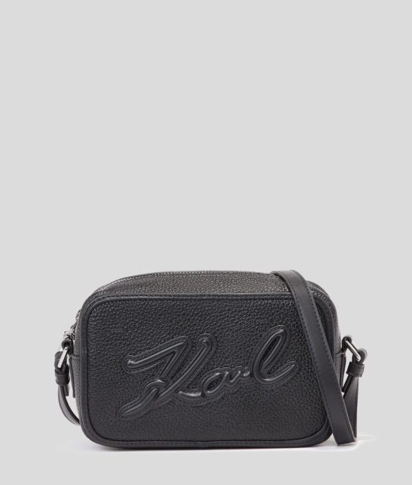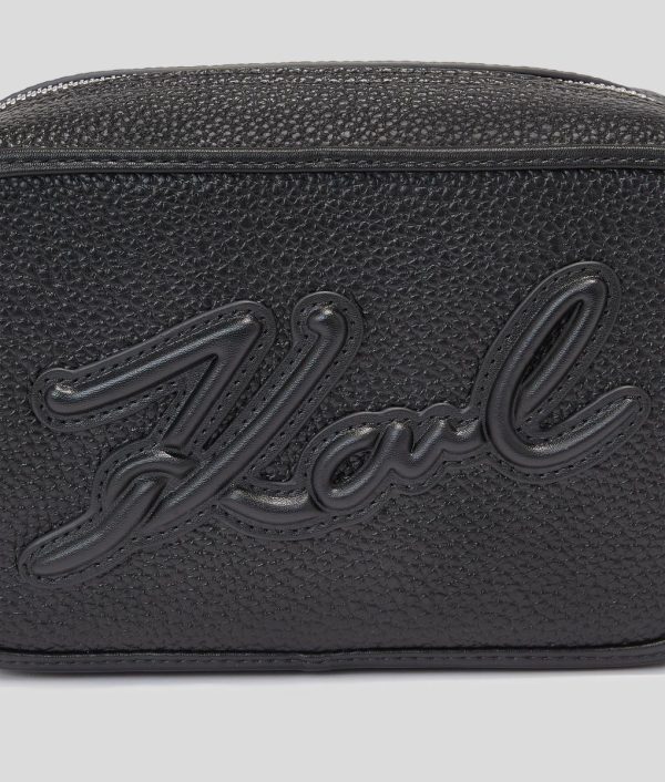 In the realm of everyday elegance, the K/Skuare camera bag emerges as a statement of refined practicality. With its lightweight silhouette, this crossbody bag promises ease of movement, complemented by a secure zip-top closure and a sleek, technical leather strap. The embossed KARL Signature logo is subtly displayed, offering an understated testament to the luxury and heritage of KARL LAGERFELD.