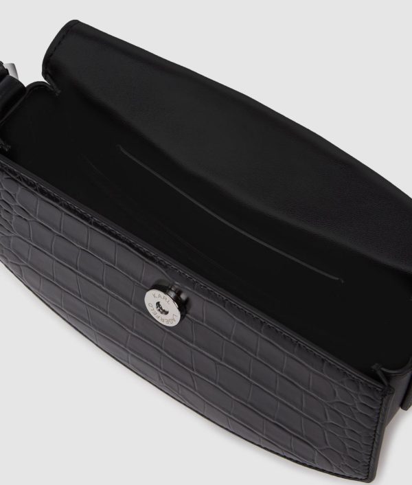 Gloss meets edge. This stylish crossbody is cut from high-shine leather embossed with a crocodile effect. Finished with KARL’s polished Autograph hardware, it is structured, functional, and elegant.