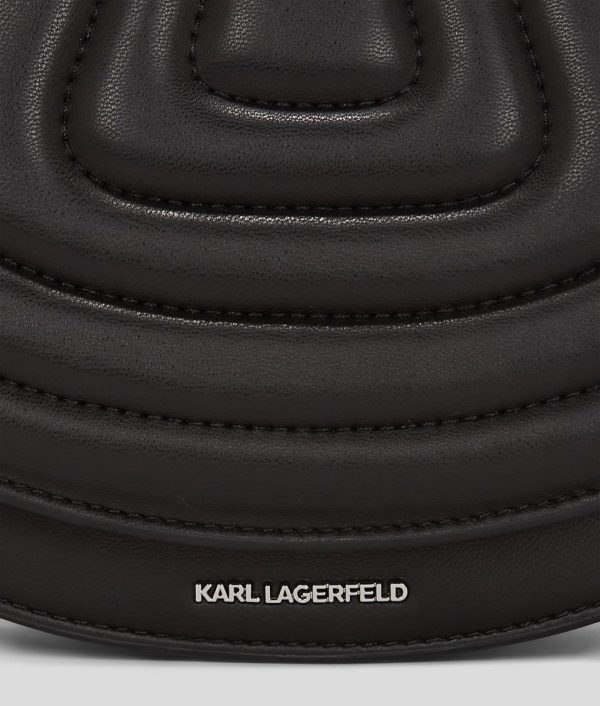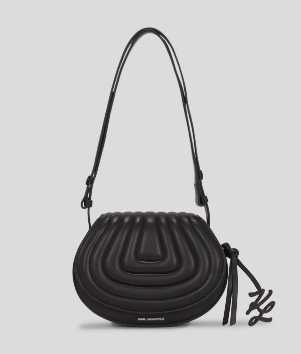 Inspired by the furniture collection designed by Karl Lagerfeld, this innovative saddle bag celebrates heritage with a modern twist. Crafted from technical leather with a raised pattern, it has a distinct, sophisticated texture. The magnetic flap closure ensures ease of access, while the adjustable shoulder strap offers versatile styling options. A chic Karl Autograph charm adds a final touch of flair.