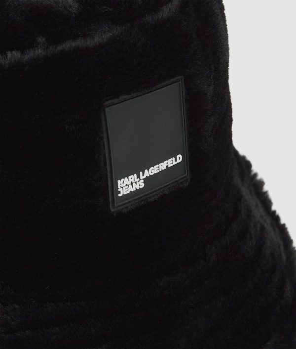Elevate your winter style with this chic retro-inspired faux fur bucket hat. The luxurious soft accessory features a fashion-forward wide-brimmed design with premium stitch detailing, finished with the iconic KARL LAGERFELD JEANS signature logo for sophisticated style.