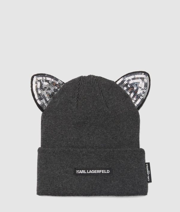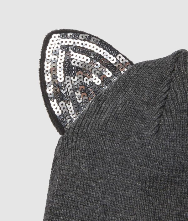 Sequin cat ears add playful charm to this cozy knitted beanie. A subtle logo patch at the folded brim blends warmth with youthful attitude.