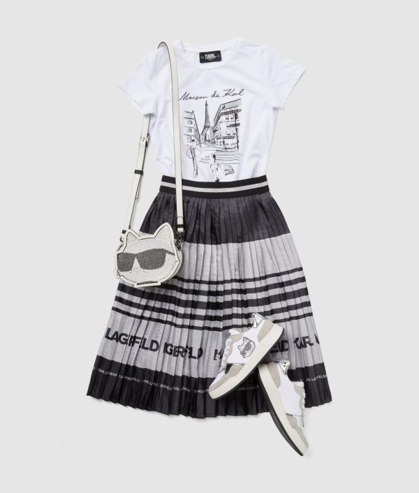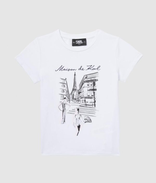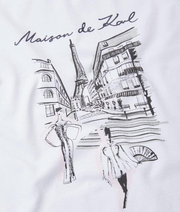 Casual-cool style with a Parisian-chic twist. This short-sleeved T-shirt is topped with bold Maison de Karl artwork. This elevated classic can be worn solo or layered under the matching sweatshirt on chilly winter days.
