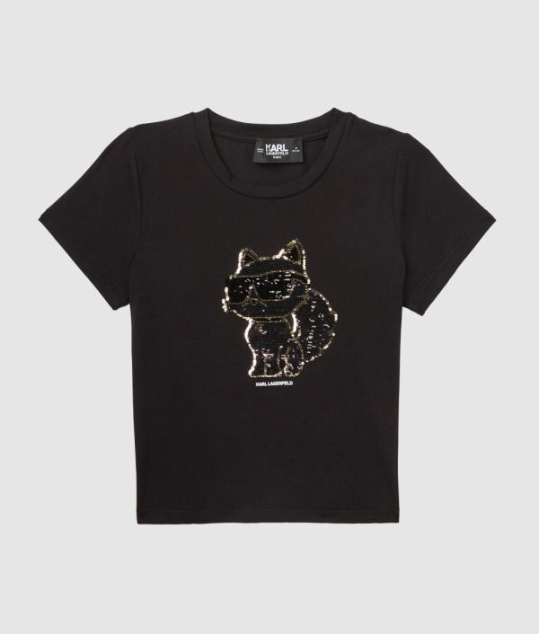 Make casual days shine with this short-sleeved T-shirt, featuring sequinned Ikon Choupette artwork that catches the light.
