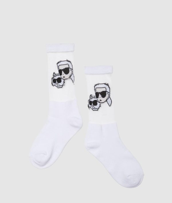 Featuring iconic Karl and Choupette artwork, these mid-length socks deliver a fashionable, playful accent to any ensemble.