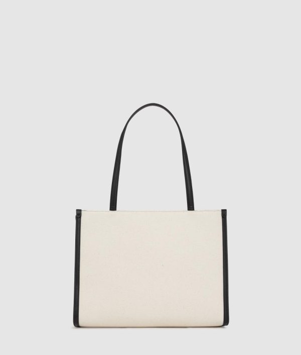 Crafted from woven recycled cotton, this structured tote features sleek technical leather accents that elevate your everyday style. Dual shoulder straps and an adorable handle design add playful sophistication to your daily essentials.