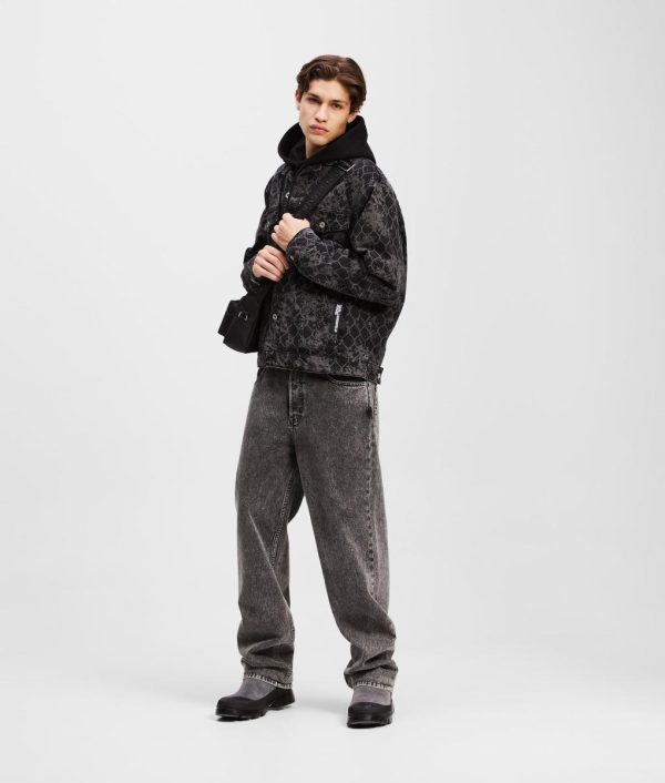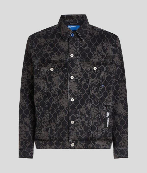 Timeless design with a contemporary twist, this relax-fit denim jacket showcases a bold all-over chain link design that exudes individuality. A branded shank button fastening and practical pockets are complemented by a signature KARL LAGERFELD JEANS leather patch, making this a must-have piece for those who dare to stand out.
