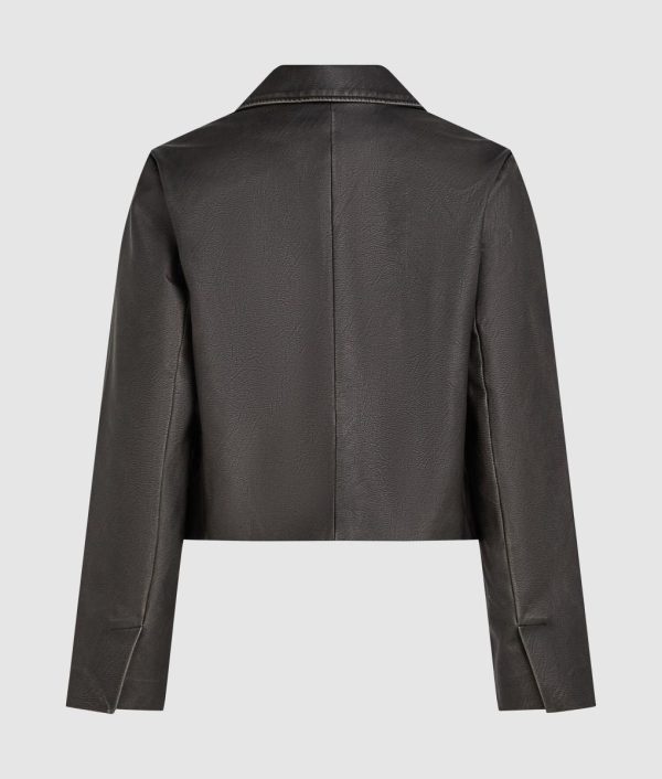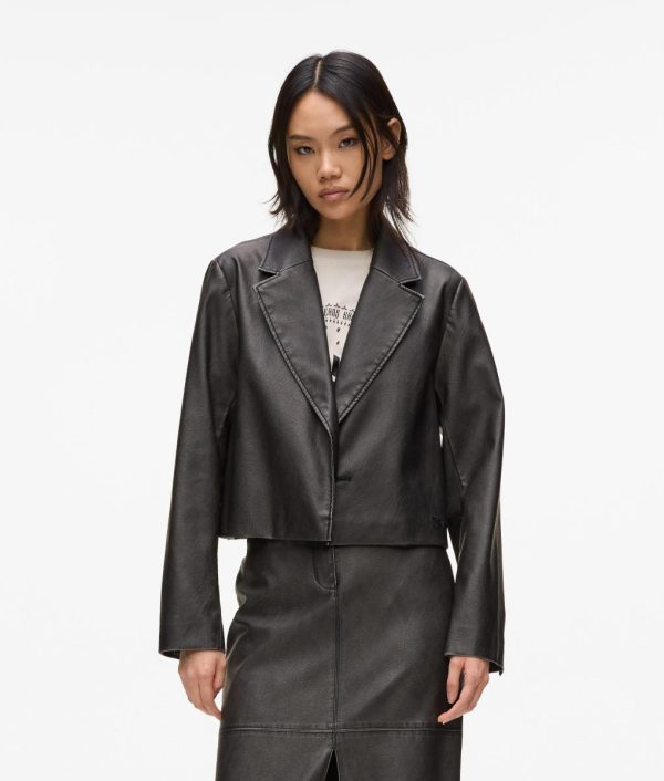 This distressed faux-leather jacket brings lived-in ease to days in the city. Pair it with the matching midi skirt or easy denim for an undeniable rock-chic attitude.