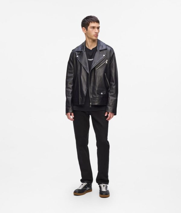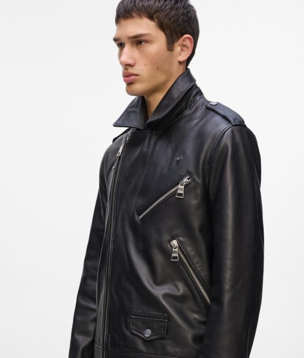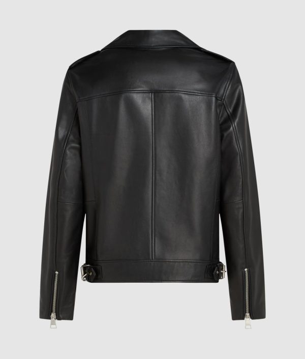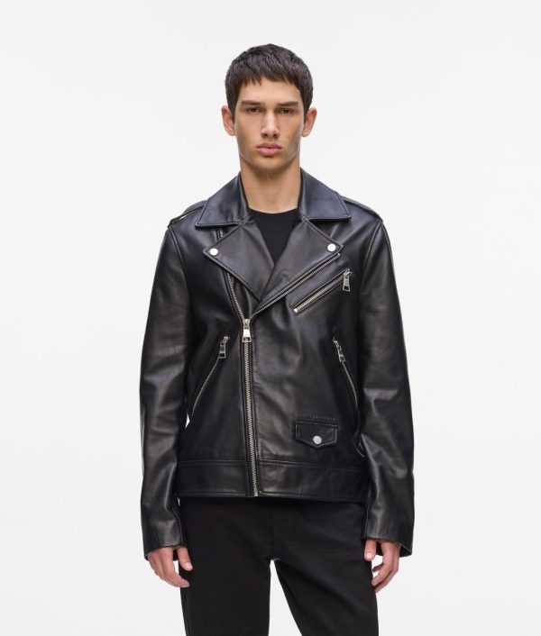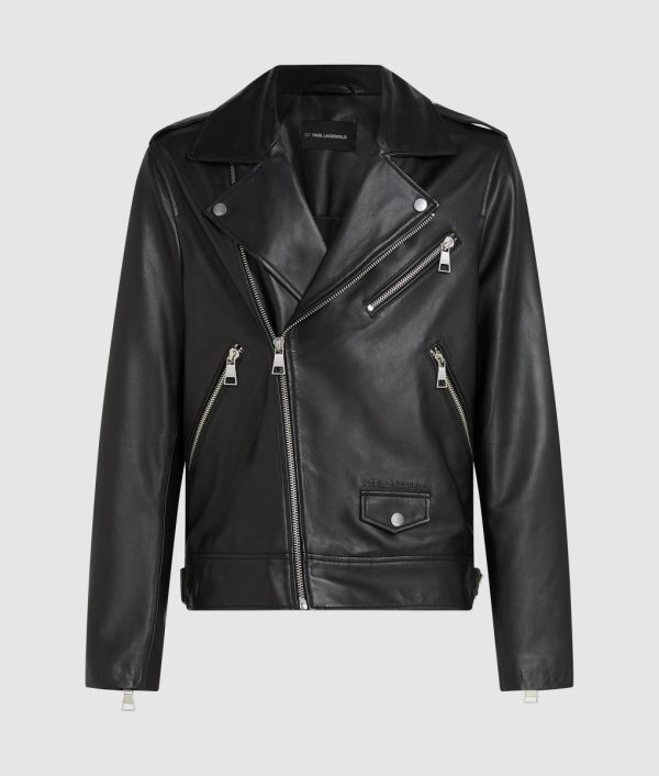 Uncompromising style meets everyday functionality in this classic leather jacket. Its dynamic asymmetric zip front creates bold, angular lines while an adjustable belt lets you customize the fit for a sleek silhouette. Finished with gleaming silver hardware, this jacket can be worn with everything, from a simple white tee and slim-fit jeans to polished shirting and tailored pants.