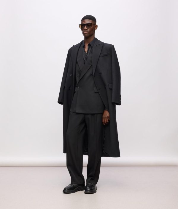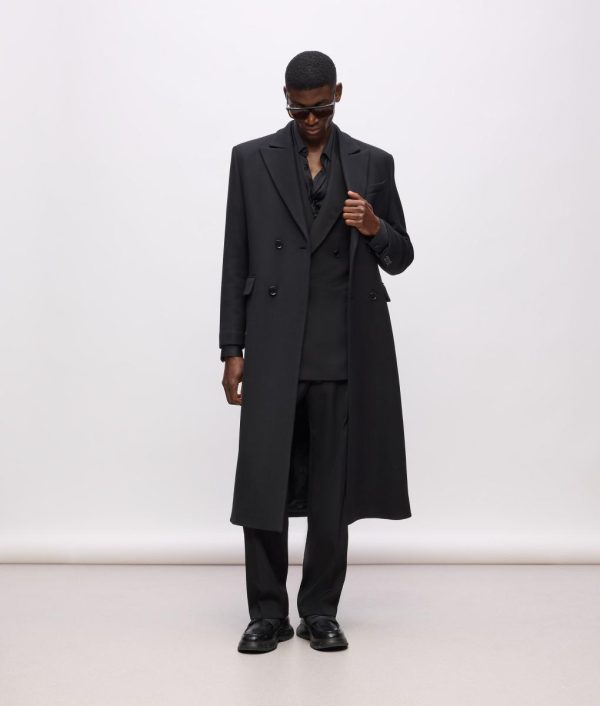 Long, lean, and built for impact. This double-breasted coat carves the frame with peaked lapels and sculpted lines. Inside, a Kameo-lined interior nods to the icon behind the heritage design.