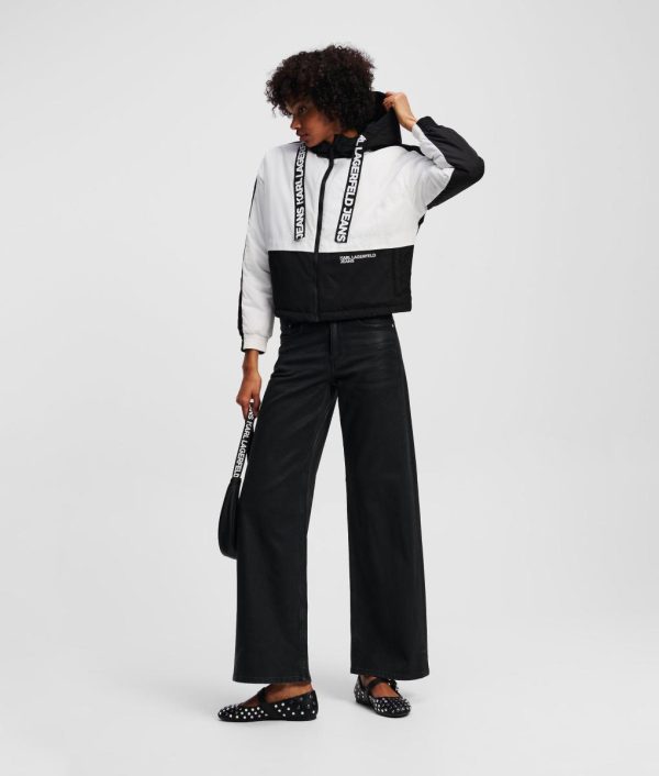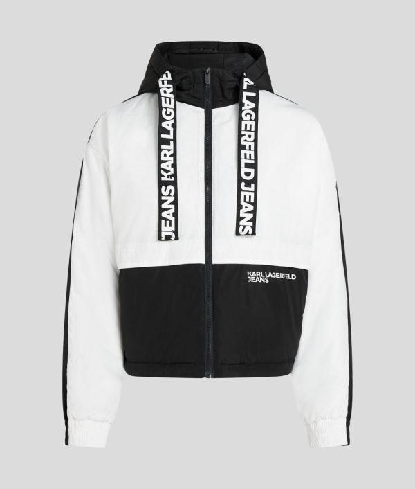 - Hooded silhouette with KARL LAGERFELD JEANS drawcords