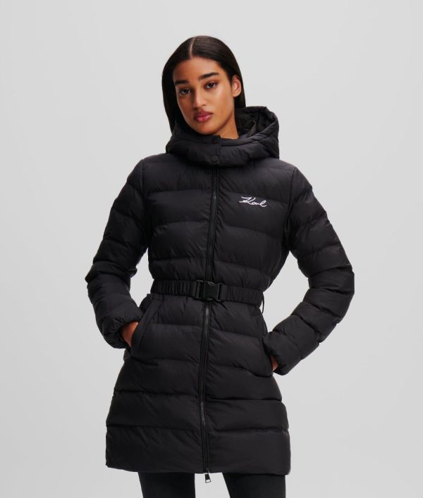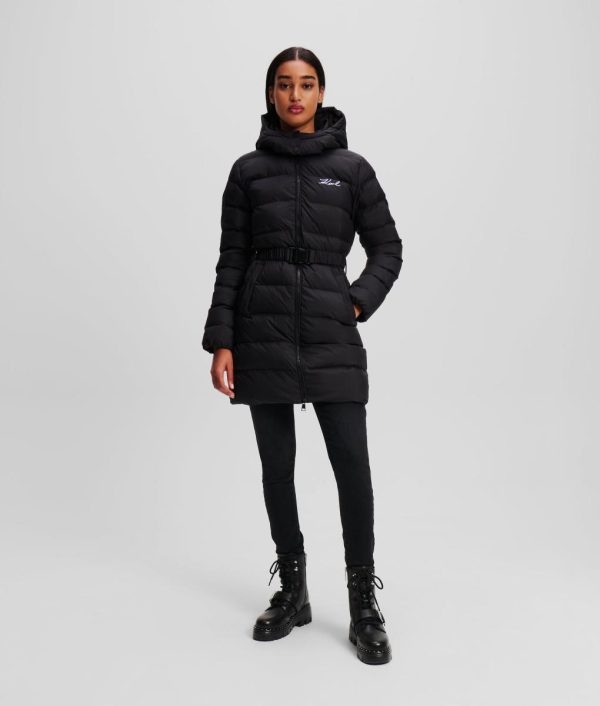 Embrace contemporary sophistication with this lightweight puffer jacket. Blending luxury with functionality, it features a high neck, sleek zip closure, and KARL Signature embroidery.