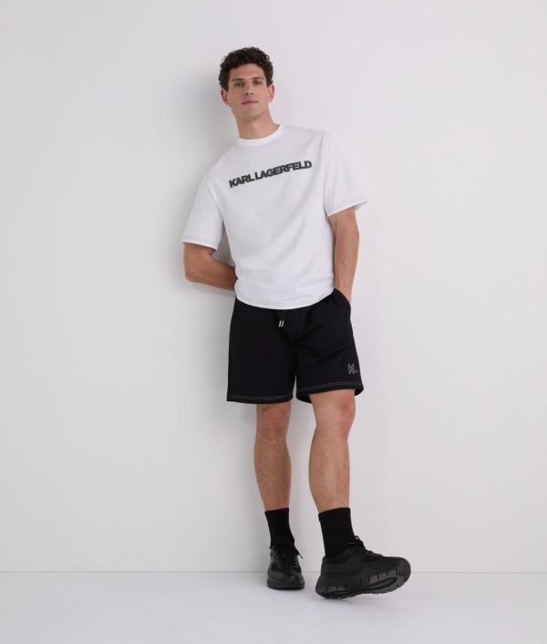 Discover the ultimate blend of comfort and style with these contrast stitch shorts. Featuring a relaxed drawcord waist and practical pockets, they are adorned with unique stitch detailing and an embroidered Karl Monogram motif. Perfect for laid-back days or casual outings.