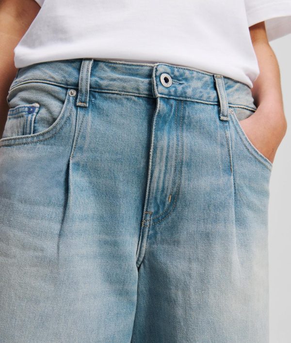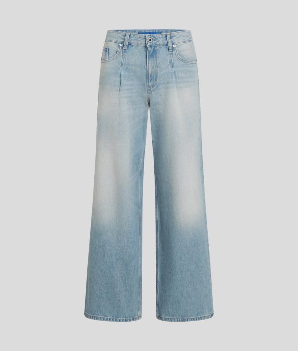 These wide-leg jeans are all about effortless style with a flattering, laidback edge. The pleated detailing at the front enhances the statement silhouette and branded hardware adds iconic KARL LAGERFELD JEANS touches. Wear yours with a cropped tee to highlight the low-rise waist or go oversized with a relaxed sweat for that borrowed-from-the-90s vibe.