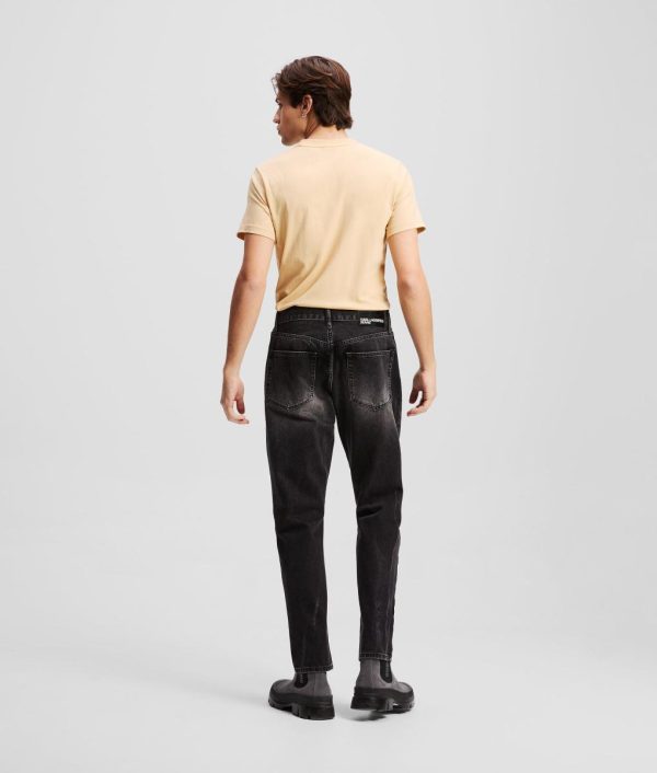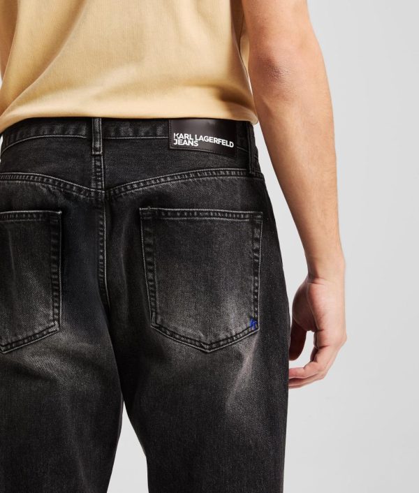 Navigate casual-cool styling with these tapered jeans, crafted from rigid denim with an edgy washed finish. With a branded button fastening, signature KARL LAGERFELD JEANS leather patch and unique K-initial embroidery, they merge classic design with statement detailing.