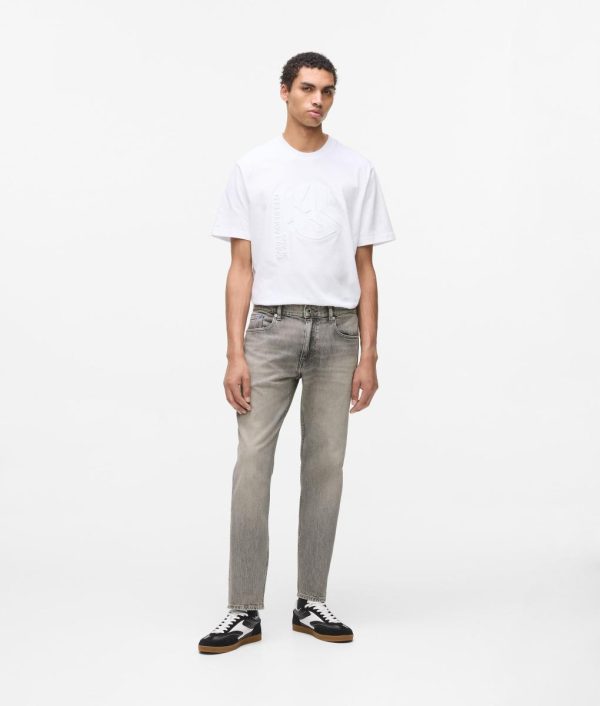 These tapered jeans deliver a versatile silhouette with just enough edge. Signature embroidery and branded hardware add unique touches, while the KARL LAGERFELD JEANS logo patch anchors the confident look.
