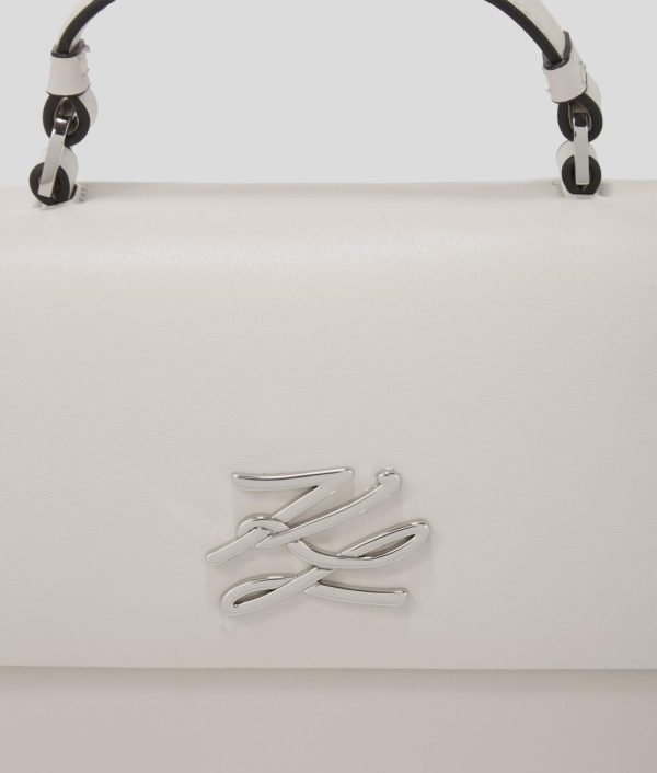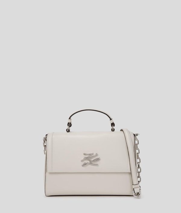 This sophisticated crossbody bag combines timeless elegance with modern functionality, featuring a structured top handle and versatile detachable chain strap that effortlessly transitions from daytime chic to evening glamour. The distinctive KARL Autograph hardware provides a signature luxury touch that elevates any ensemble.