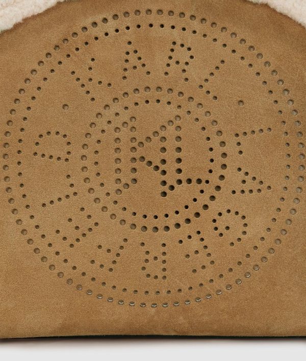 Experience luxurious comfort with this beautifully crafted small tote featuring premium suede exterior and plush shearling interior lining, ideal for autumn outings. Designed with a versatile adjustable crossbody strap for hands-free convenience and showcasing the signature KARL LAGERFELD perforated K/Circle design.