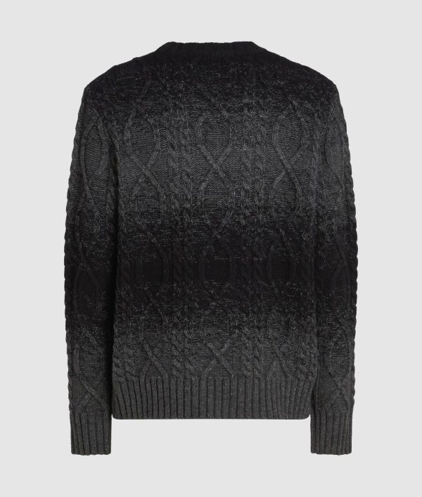 This cozy wool-blend sweater features a classic crewneck and cable knit with a degradé effect, making it a statement piece for chilly days. The tonal KL Monogram adds to its distinctive style.