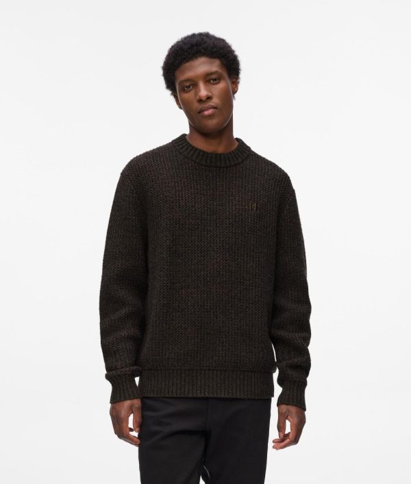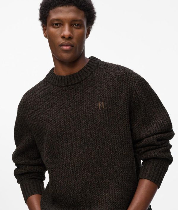 A cozy lambswool-blend sweater featuring a timeless crewneck and ribbed details for a perfect fit. The KL Monogram embroidery adds a subtle touch of luxury and heritage.