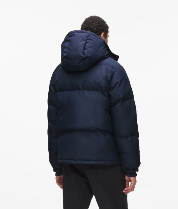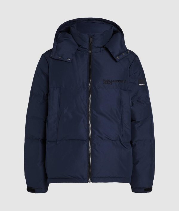 Elevate your streetwear game with this premium puffer jacket, featuring a sleek zip-front closure that flows into a modern high funnel neck with detachable hood for versatile protection. Functional zipped side pockets keep essentials secure, while the iconic KARL LAGERFELD JEANS logo delivers unmistakable brand prestige.