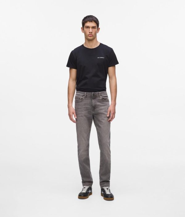 Elevate your everyday style with these premium five-pocket jeans from KARL LAGERFELD. The signature branded waistband patch delivers sophisticated luxury to your casual wardrobe.