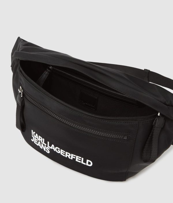 Ideal for the modern urban adventurer, this spacious belt bag features secure zip closure and an adjustable webbing strap that converts effortlessly from crossbody to waist wear. Showcasing a distinctive KARL LAGERFELD JEANS logo, it delivers contemporary edge to casual ensembles.