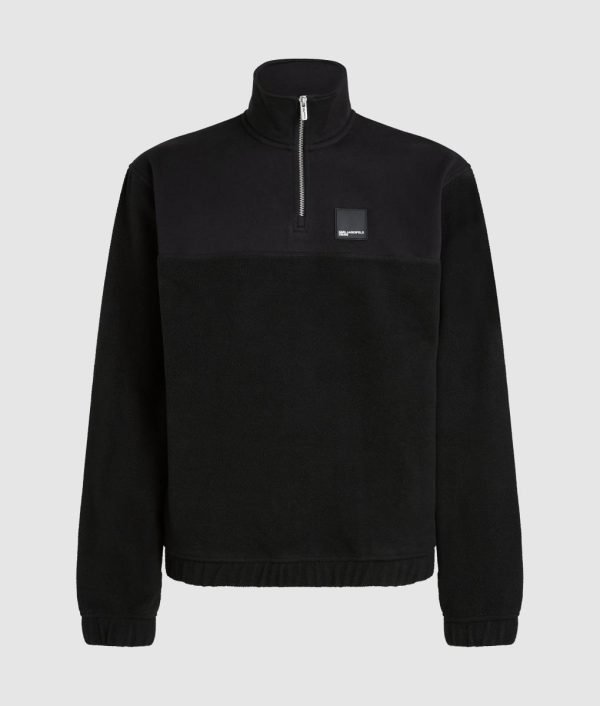 - Premium fleece fabrication with contrasting fabric at the upper panel