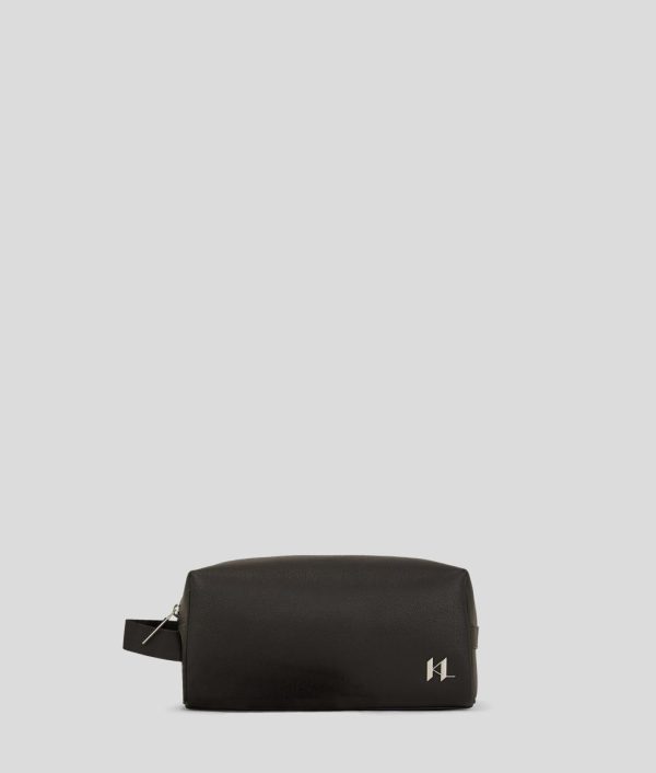 Karl Lagerfeld Men’s K/Monogram Leather Dopp Kit – Black