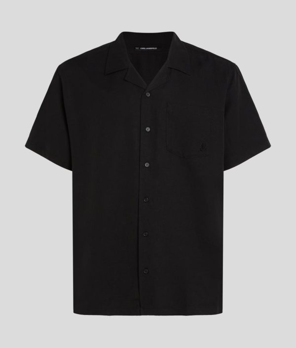 A versatile short-sleeved shirt featuring a sharp pointed collar and signature branded buttons that deliver sophisticated style. The subtle tonal KARL Kameo embroidery at the chest pocket adds an exclusive designer touch. Perfectly pairs with matching shorts for a polished casual look that transitions effortlessly from vacation getaways to weekend festivals.