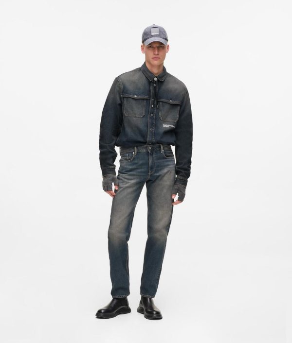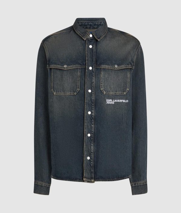 Karl Lagerfeld Men’s Relaxed Denim Shirt in Soft Tinted Blue