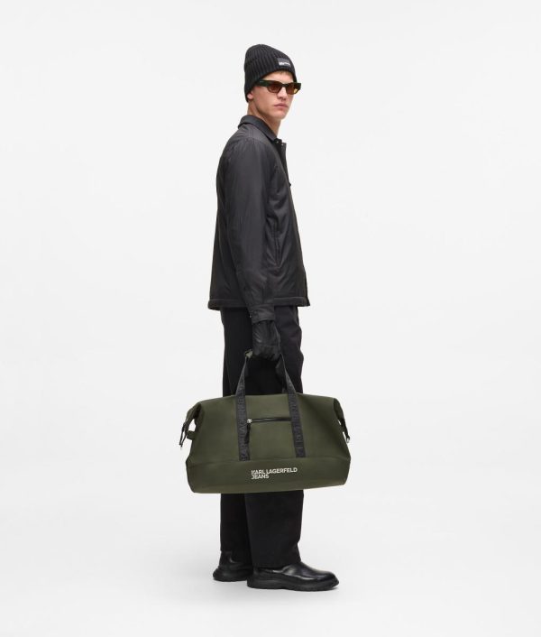 Ideal for weekend getaways and urban adventures, this generously sized weekender bag features secure zip closure protection and versatile carrying options. The distinctive contrasting KARL LAGERFELD JEANS logo delivers sophisticated urban appeal.