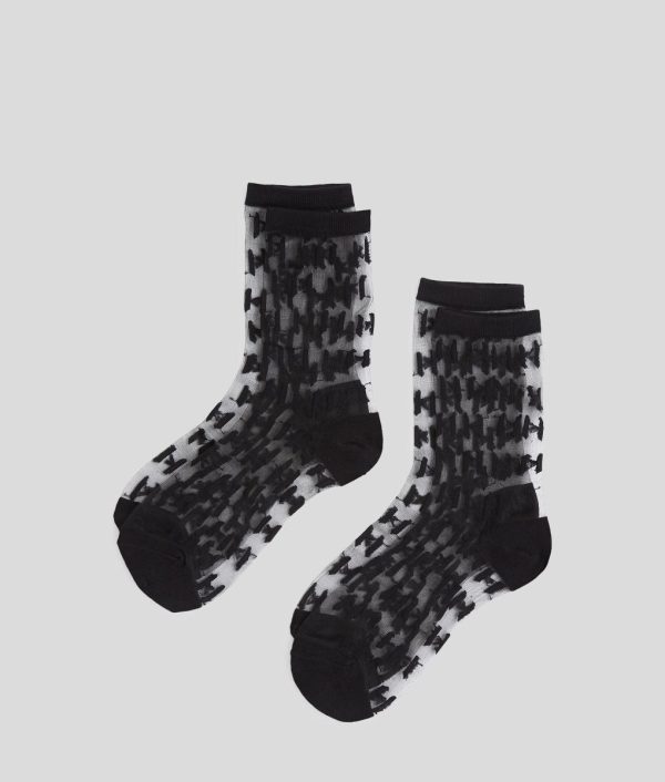 Elevate your everyday style with these sophisticated sheer mesh socks featuring the iconic KARL Monogram pattern throughout. This versatile two-pack delivers exceptional value, allowing you to showcase luxury designer details with multiple outfit options.
