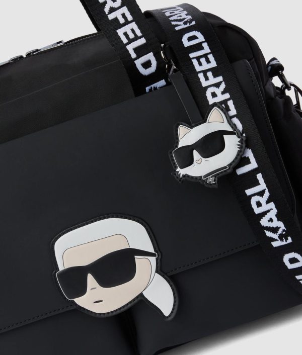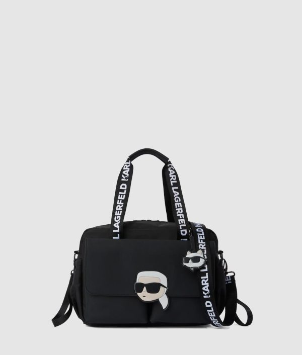 Polish meets practicality in this diaper bag. An interchangeable crossbody strap and stroller clips free up your hands, while multiple pockets keep essentials organized. Ikon Karl and Choupette charms add a playful finish.