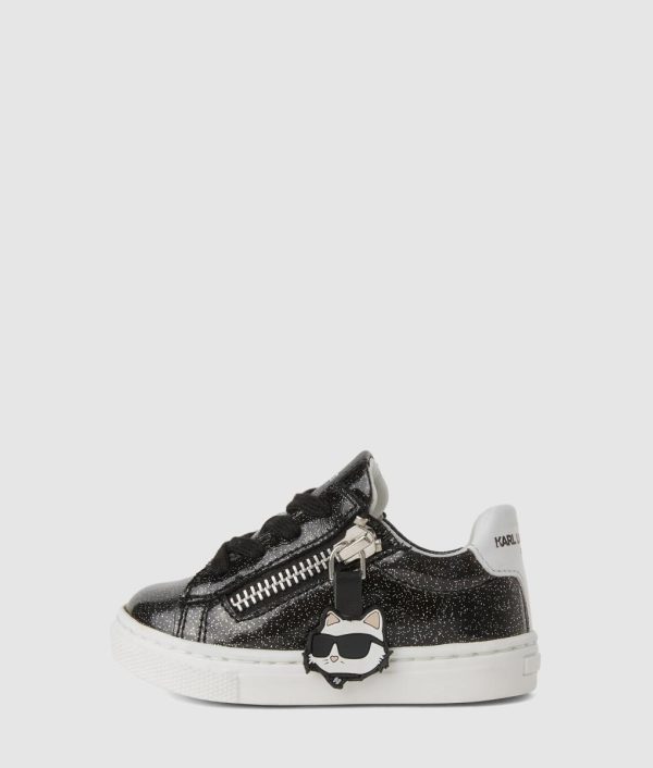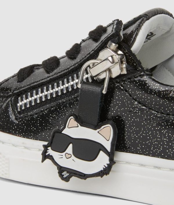 Blending delicate style with easy wear for little feet, these low-top sneakers are made from soft patent leather and embellished with playful zipper details and an Ikon Choupette charm,