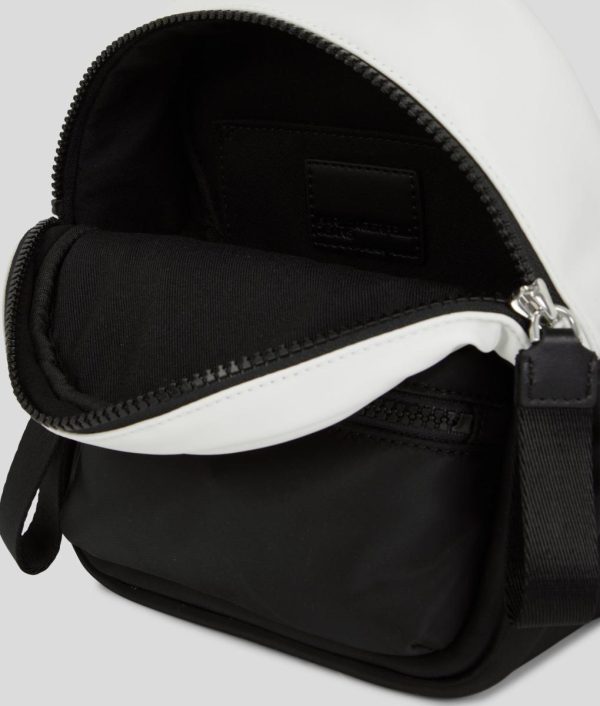 Experience compact luxury with this chic mini backpack featuring a secure zip-around closure and practical front pocket. Versatile carrying options include a top handle and adjustable crossbody strap, while the bold black and white color blocking creates a standout fashion statement.