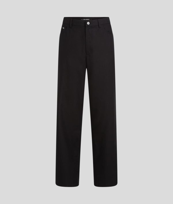 Timeless style meets modern flair in these contrast stitch pants. Featuring a shiny silver branded button and classic five-pocket design, they offer a unique design with eye-catching stitch detailing. The Karl Monogram adds a statement finish, perfect for any wardrobe.