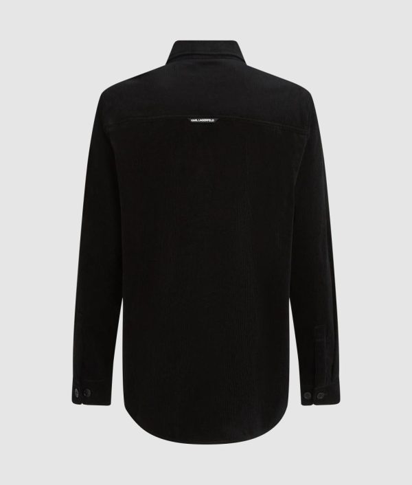 A versatile corduroy overshirt with a classic button front and pointed collar, perfect for easy layering. Flap pockets with hidden snaps add practicality, while the KL Monogram rivet offers a signature touch.