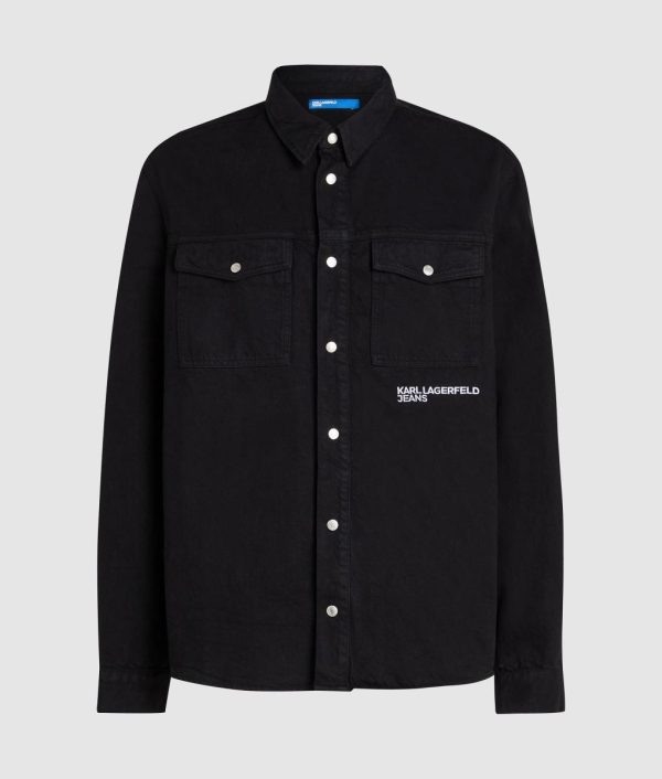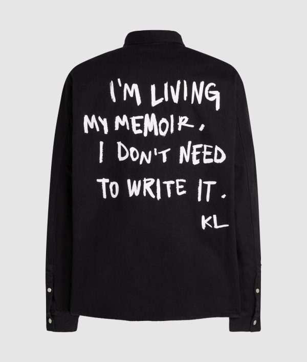 Let your layers do the talking. This roomy denim overshirt delivers attitude with contrasting press studs and Karl Lagerfeld’s iconic words printed across the back.