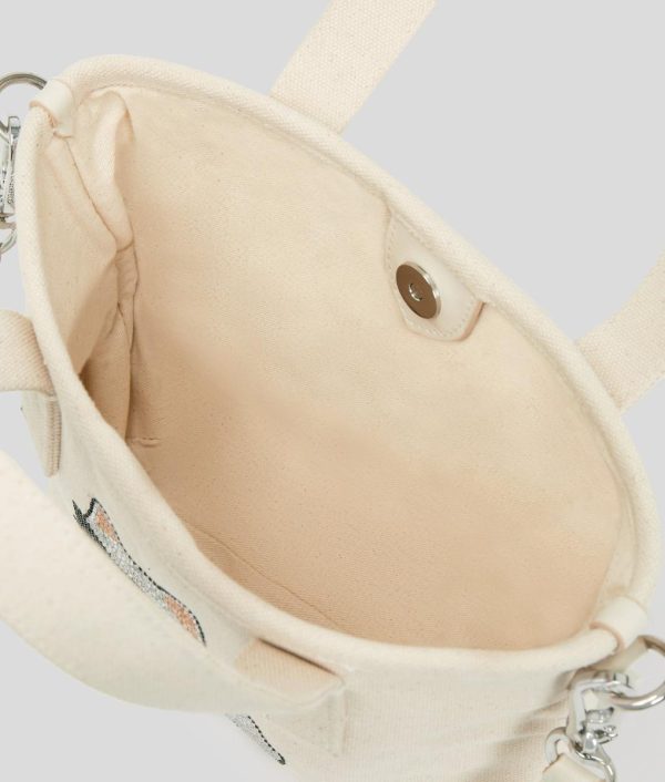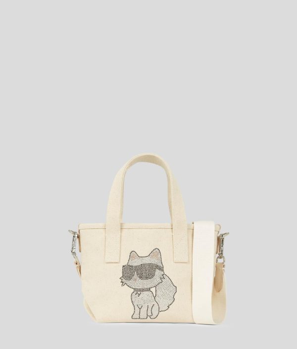 A chic companion for daily adventures, this small shopper features twin top handles and a detachable, adjustable strap for versatile styling. Adorned with playful Ikon Choupette artwork in sparkling rhinestones, it effortlessly blends fun with functionality.