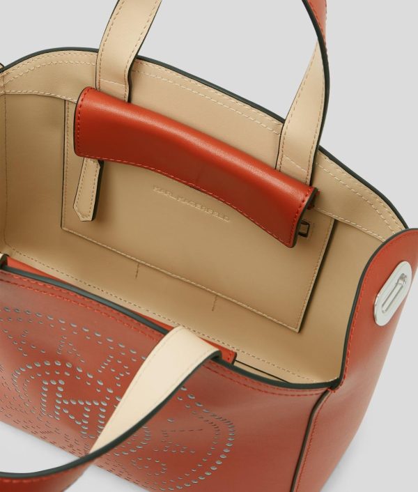 Karl Lagerfeld Shoppers & Totes | K/CIRCLE PERFORATED SMALL TOTE BAG Red Brick – Women